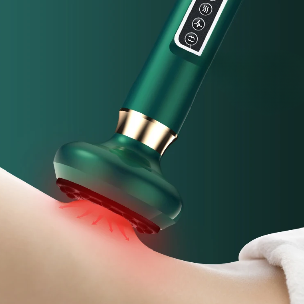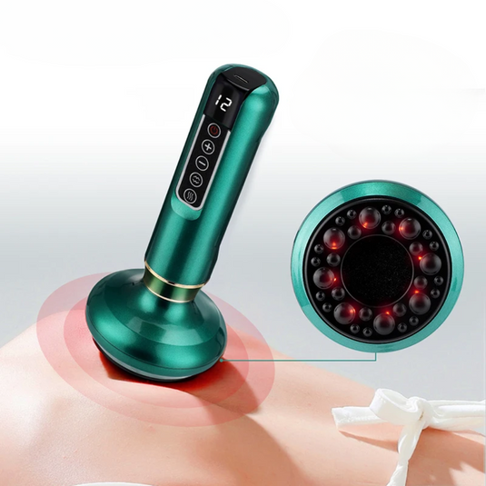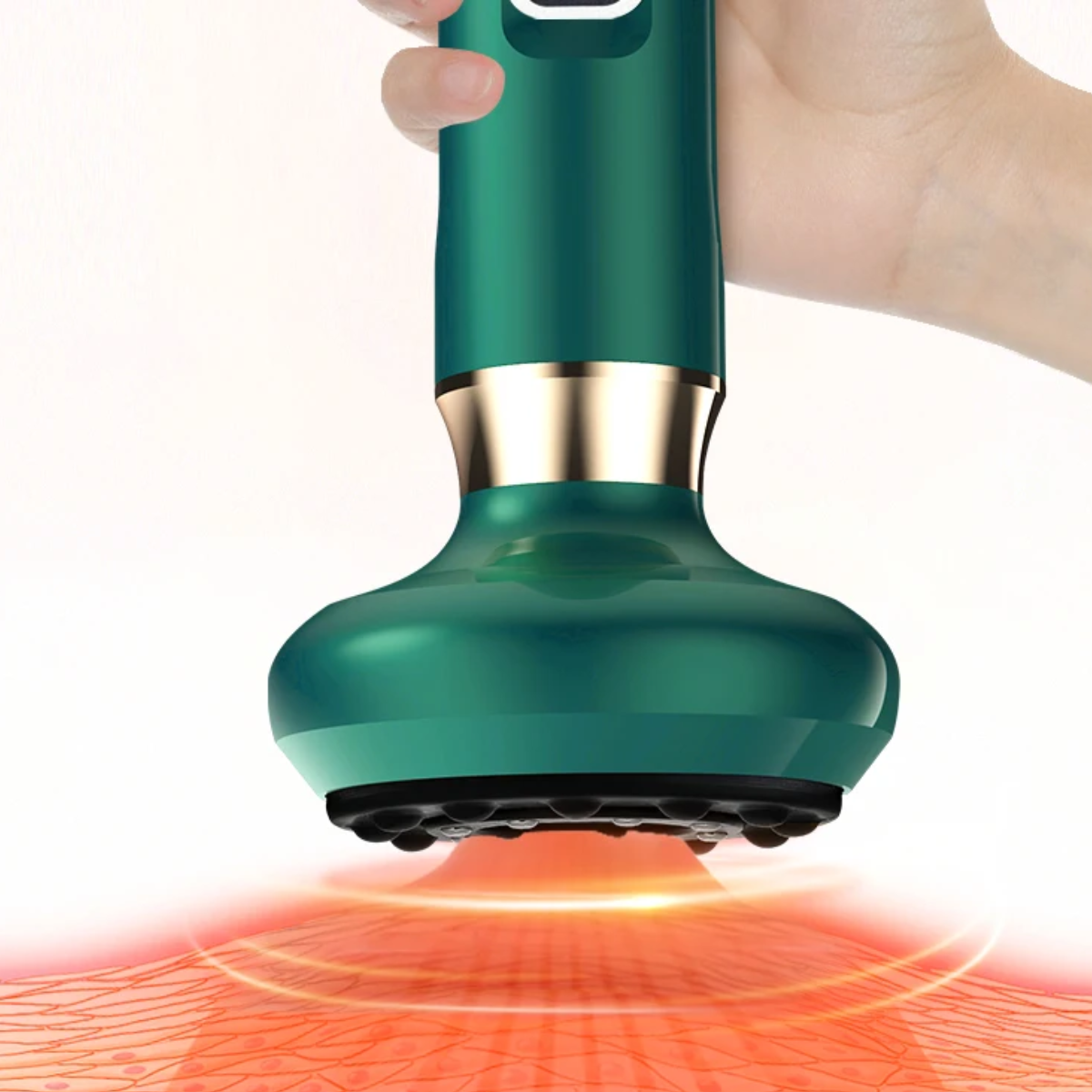 La función de succión crea un suave vacío que eleva y estimula la piel y los tejidos subyacentes. Esta acción favorece el drenaje linfático, ayudando a eliminar toxinas y el exceso de líquidos retenidos.