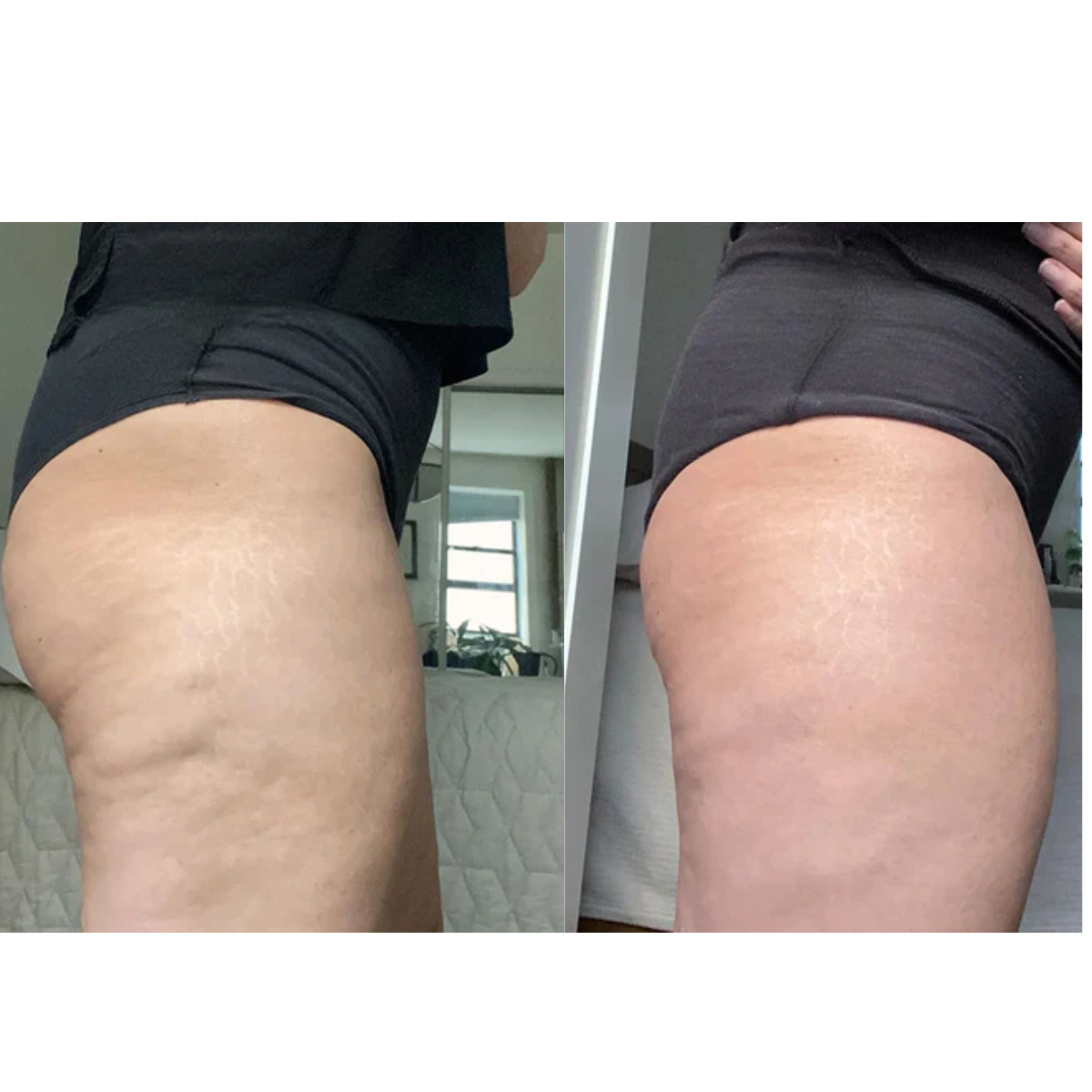 "Con solo algunas semanas de uso, la diferencia en mis muslos y glúteos es visible. Las marcas de celulitis han disminuido mucho y siento la piel mucho más firme."
